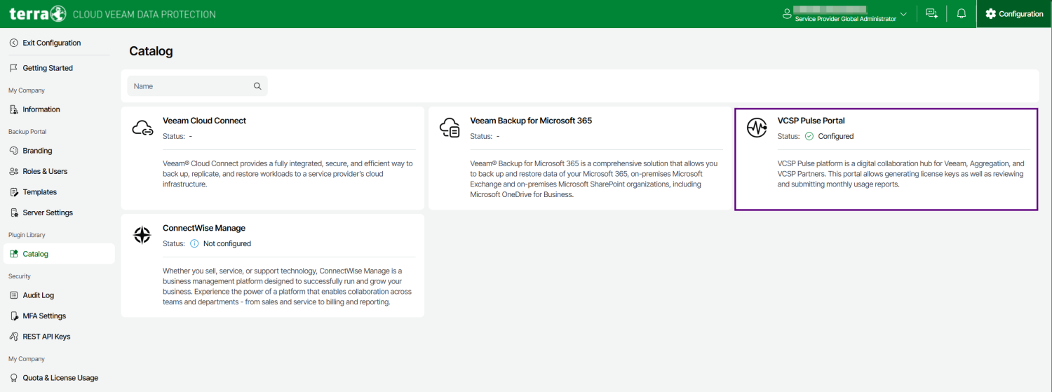 Sie finden das VCSP Pulse Plug-in im Bereich der Configuration in der Plugin Libray.